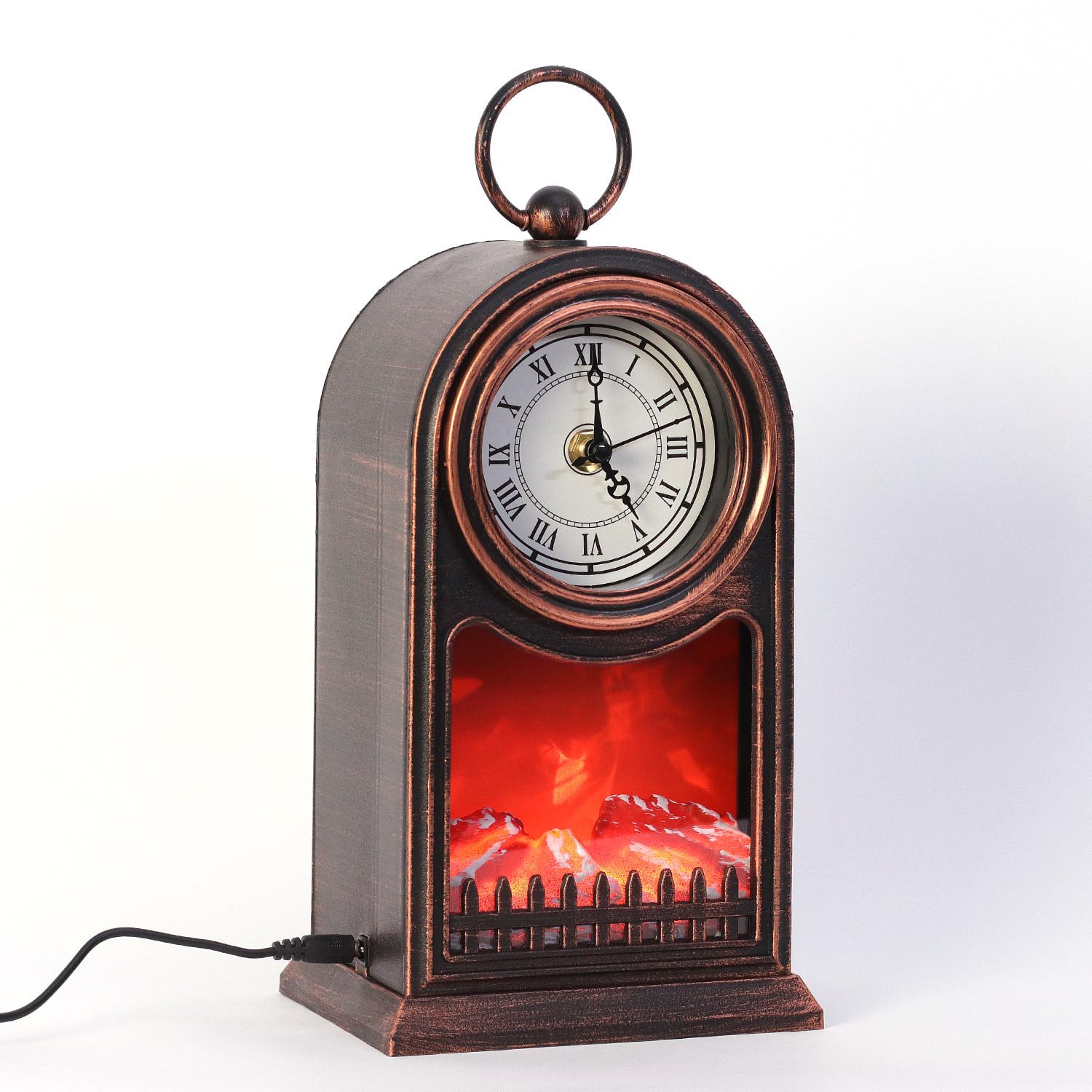 Камин светодиодный «Часы» с эффектом пламени 25*14*40 см бронза