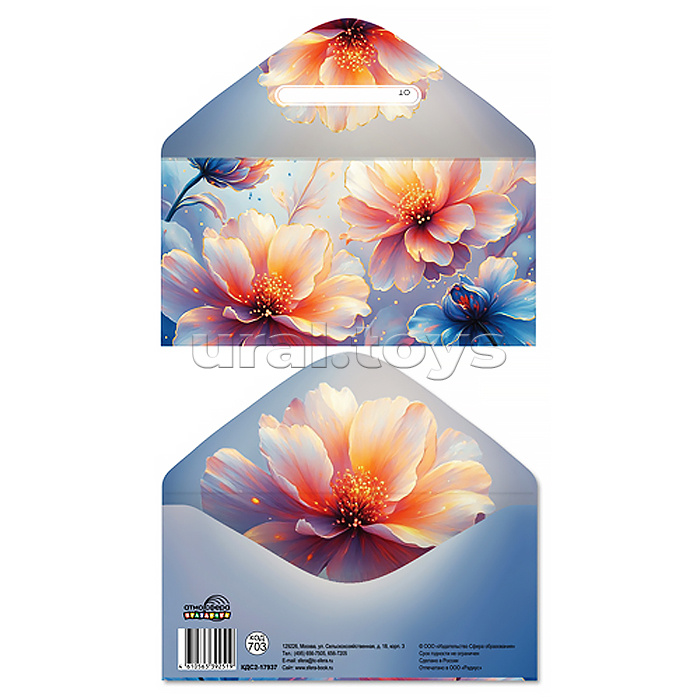 Конверт для денег на склейке "Без надписи" (золотая фольга, женский, цветы)