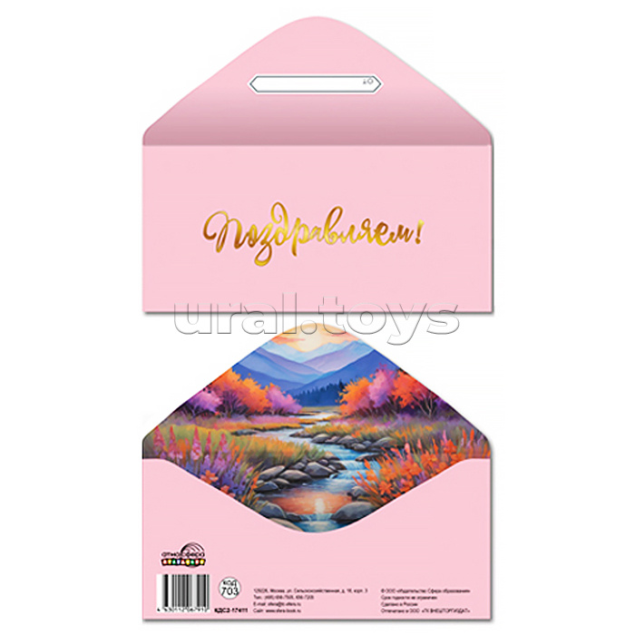 Конверт для денег на склейке "Поздравляем!" (однотонный, унисекс, золотая фольга)