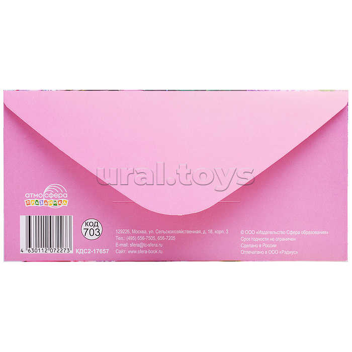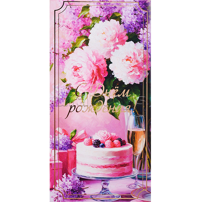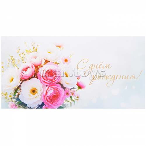 Конверт для денег на склейке "С Днем рождения!" (цветы, золотая фольга)