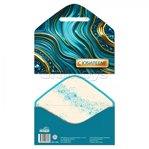Конверт для денег на склейке "С Юбилеем!" (унисекс, волны, узоры)
