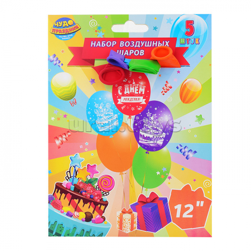 Латексные шары - набор 5 шт, "С днем рождения!" монохром принт,