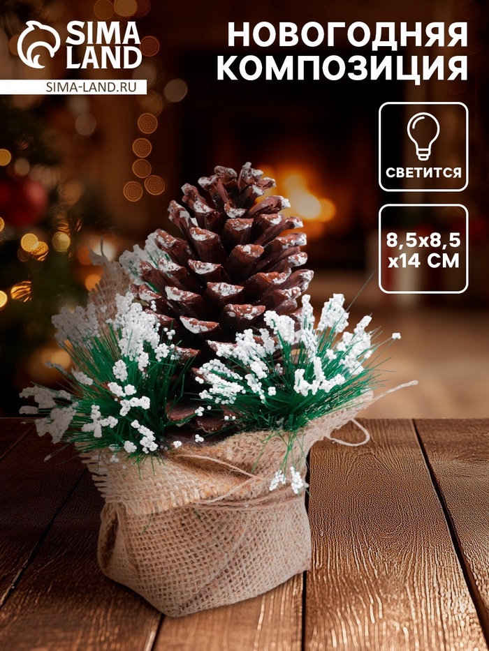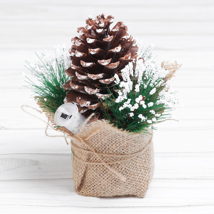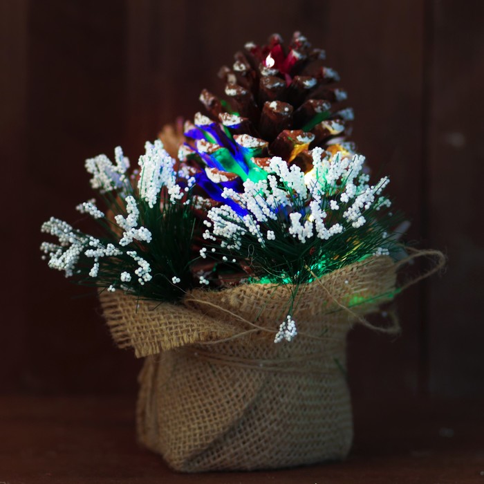 Новогодняя композиция «Шишка», с подсветкой, 8.5×8.5×14 см