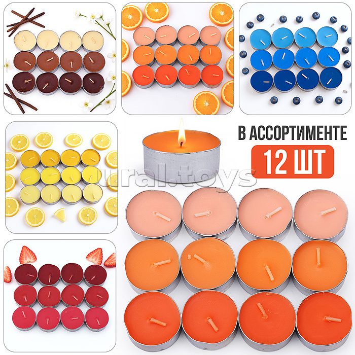 Набор арома свечей (В ассортименте: ваниль/клубника/апельсин/роза/лимон/яблоко/черника/лаванда (12шт.)