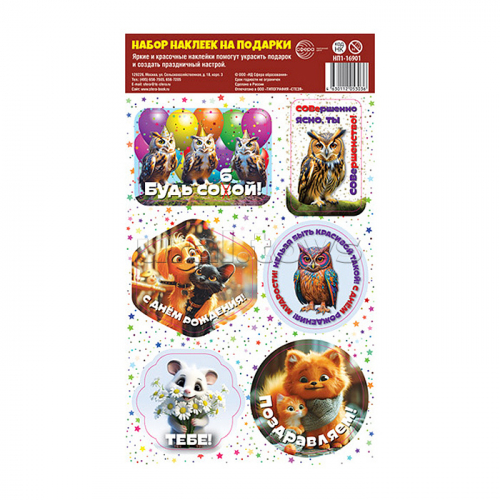 Набор наклеек на подарки. День рождения (156х270 мм) (фигурные, 6 шт на листе)