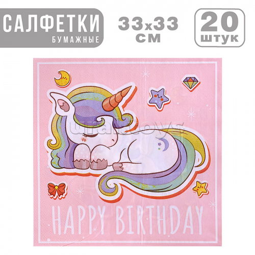 Набор посуды одноразовой "Единорог и радуга" салфетки (20 шт)