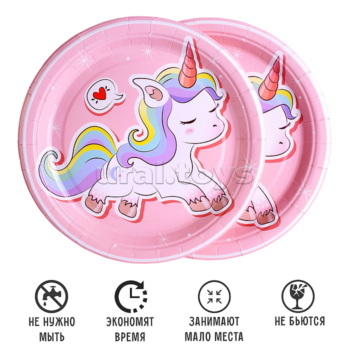 Набор посуды одноразовой "Мечта единорога" тарелки 18*18 см (10 шт)