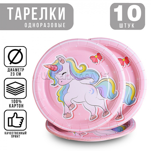 Набор посуды одноразовой "Мечта единорога" тарелки 23*23 см (10 шт.)