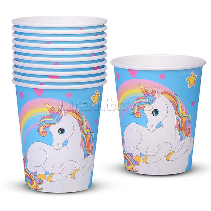 Набор посуды одноразовой "Сказочный единорог" стаканы 10шт.