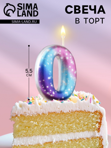 Свеча для торта цифра 0, космос, 5.5 см, 16 мин