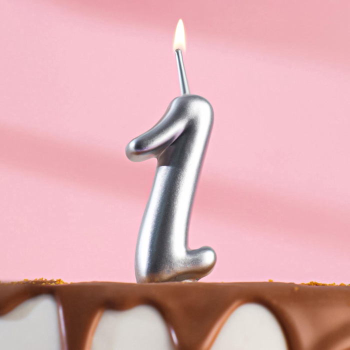 Свеча для торта «Цифра 1», серебристая, 5.2 см