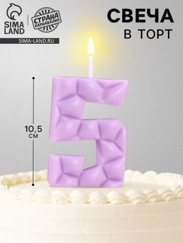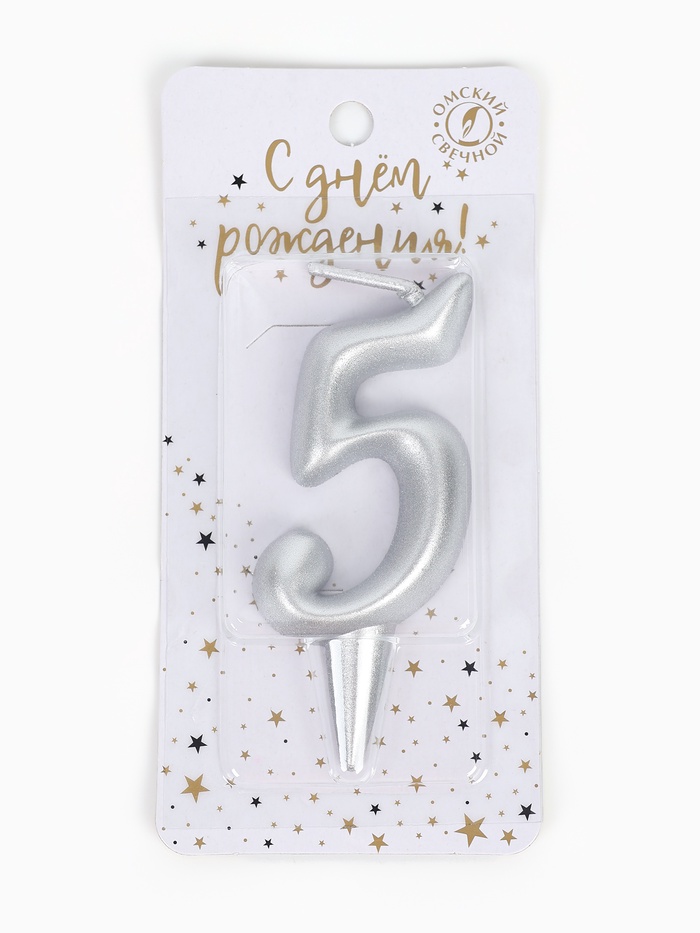 Свеча для торта «Цифра 5», серебристая, 5.2 см