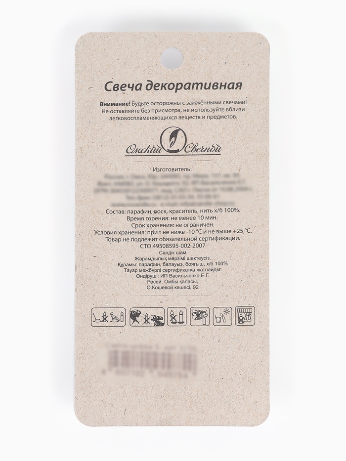Высота свечи, см: 7,8