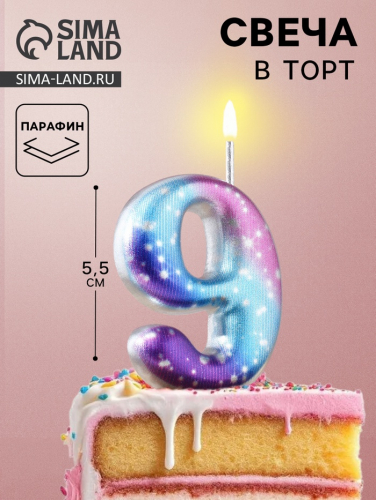 Свеча для торта цифра 9, космос, 5.5 см, 16 мин