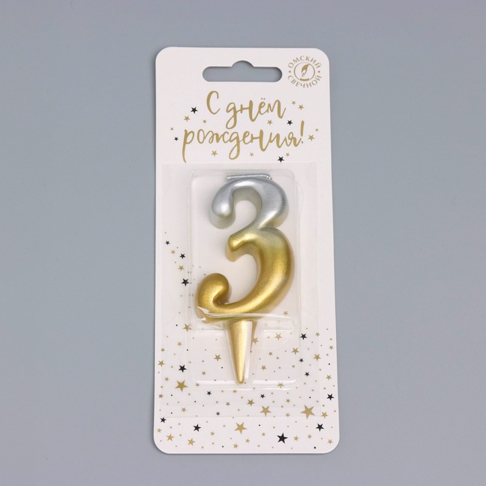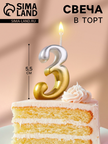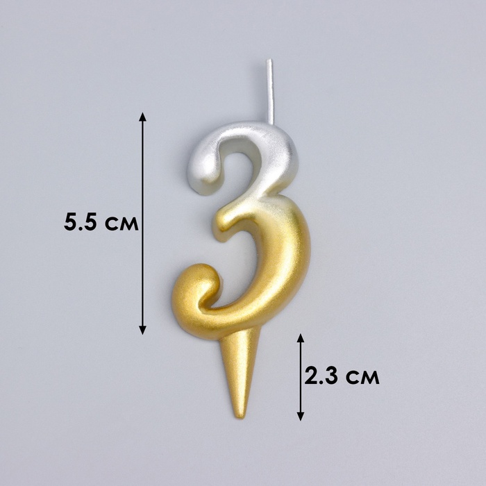 Свеча для торта цифра «Овал» 3, 5.5 см, золото-серебро