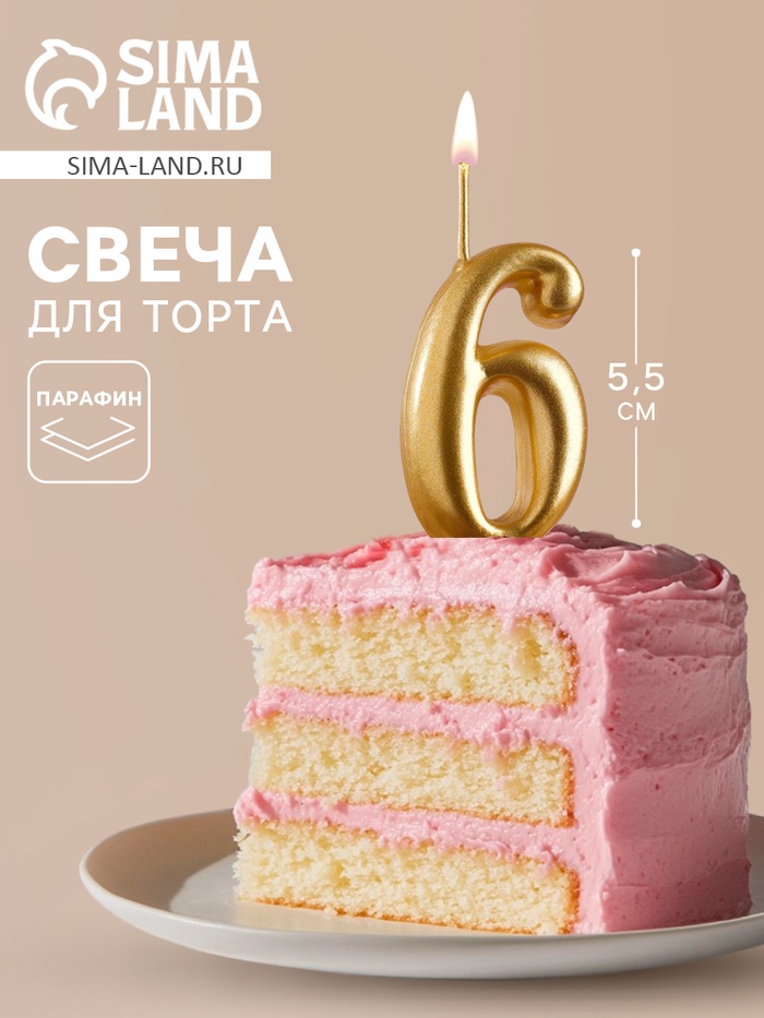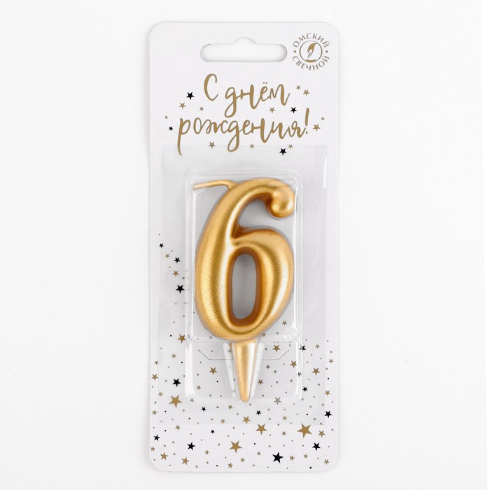 Свеча для торта цифра «Золотая», 5.5 см, цифра 6