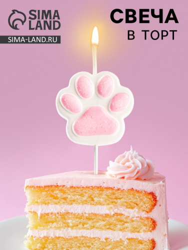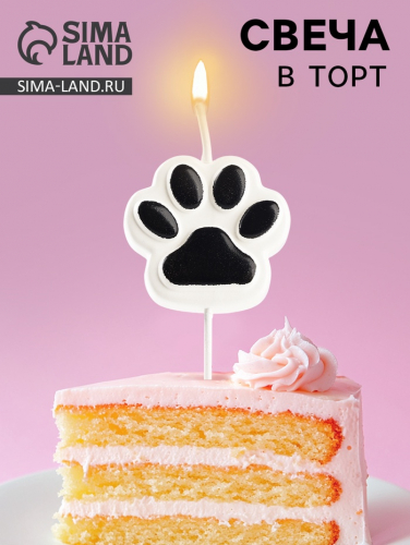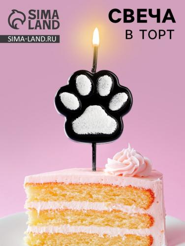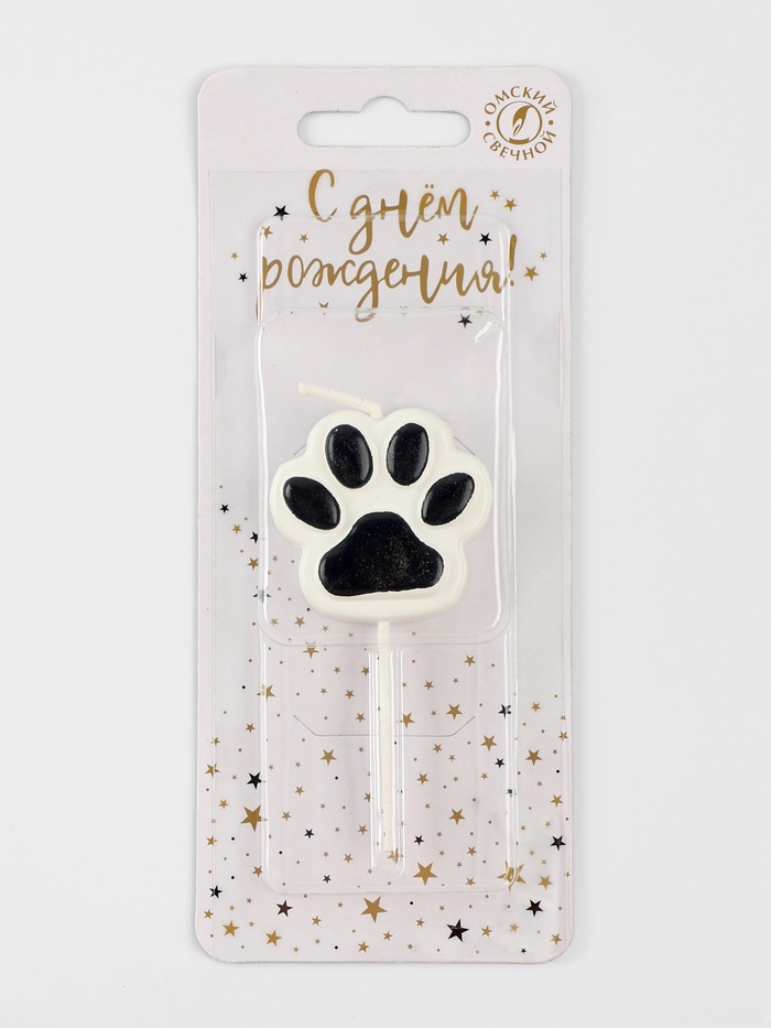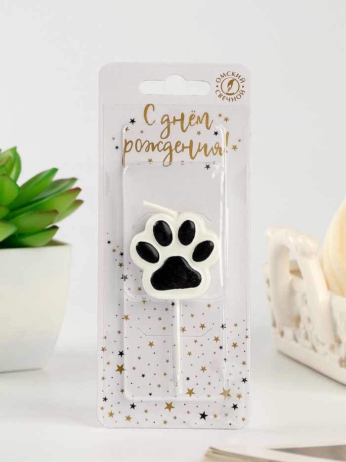 Свеча для торта на шпажке «Лапка - сквиш», бело-черная