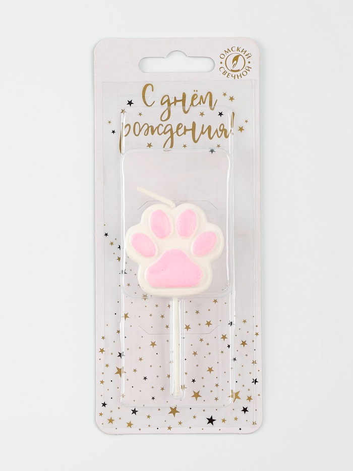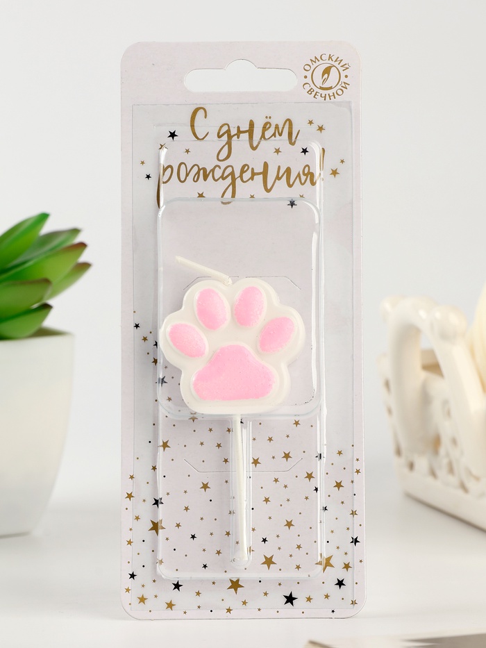 Свеча для торта на шпажке «Лапка - сквиш», бело-розовая