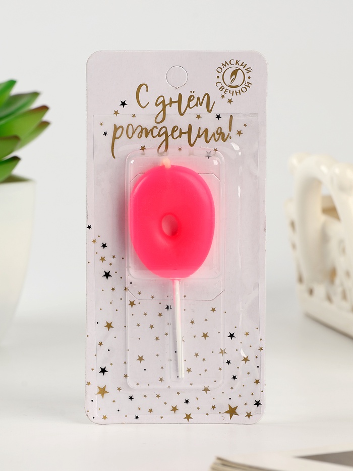 Свеча для торта «Неоновая», цифра 0, розовая