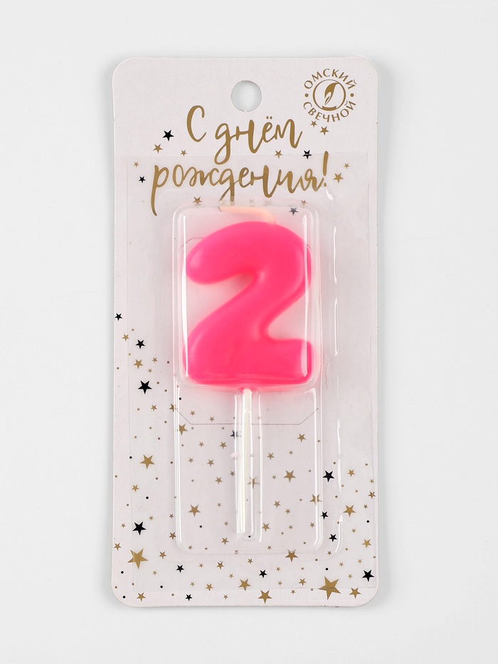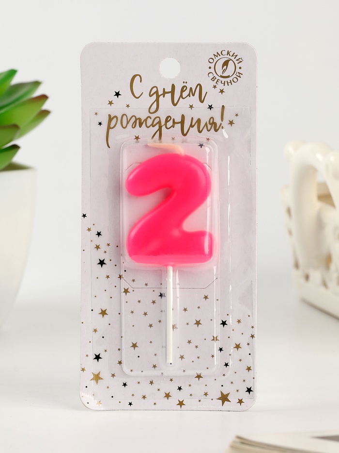 Свеча для торта «Неоновая», цифра 2, розовая