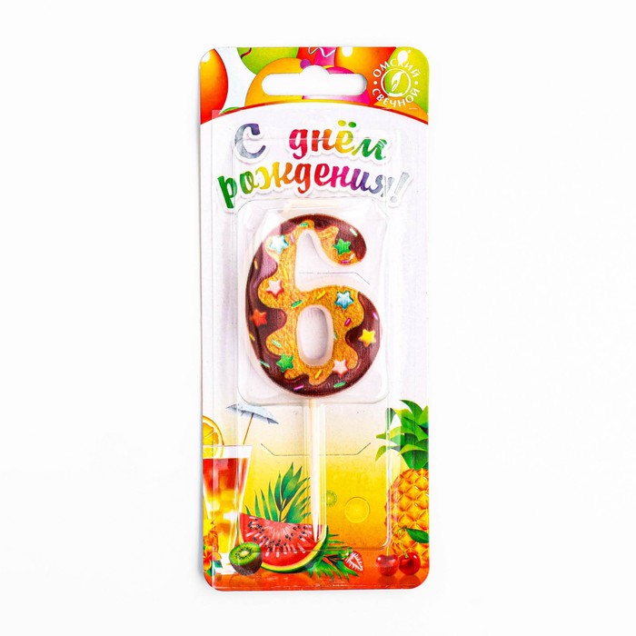 Свеча для торта «Печенье с шоколадной глазурью», цифра 6, 5.5 см