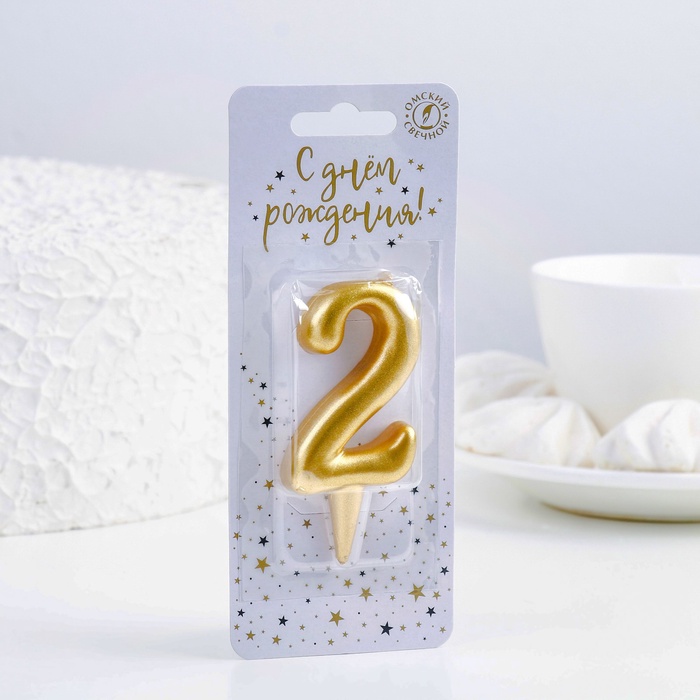Свеча для торта золотая «Цифра 2», 5.5 см
