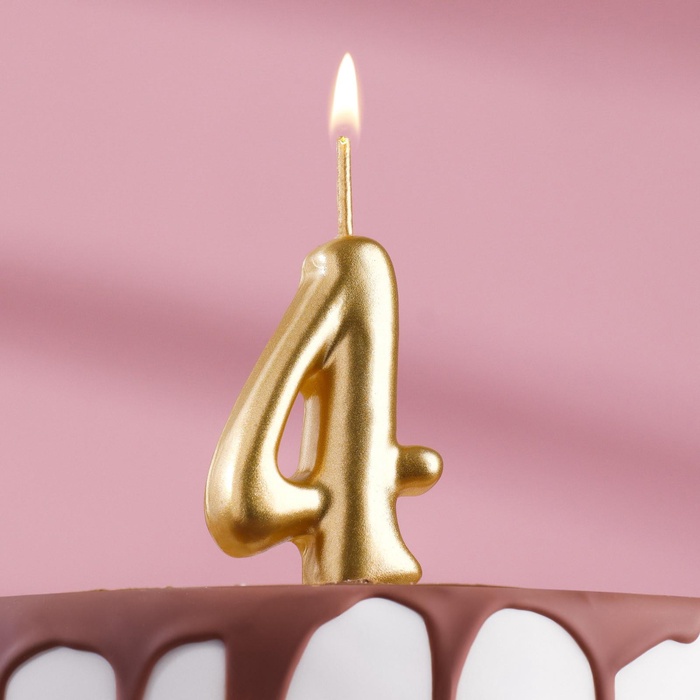 Свеча для торта золотая «Цифра 4», 5.5 см