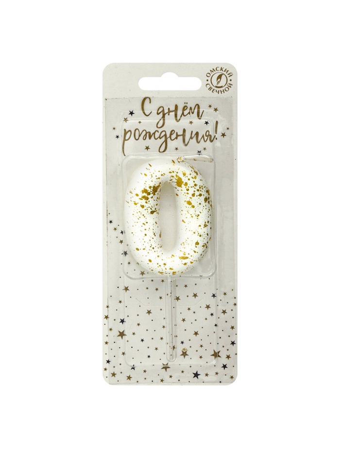 Свеча в торт «Белые брызги», цифра 0