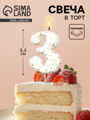 Свеча в торт «Белые брызги», цифра 4