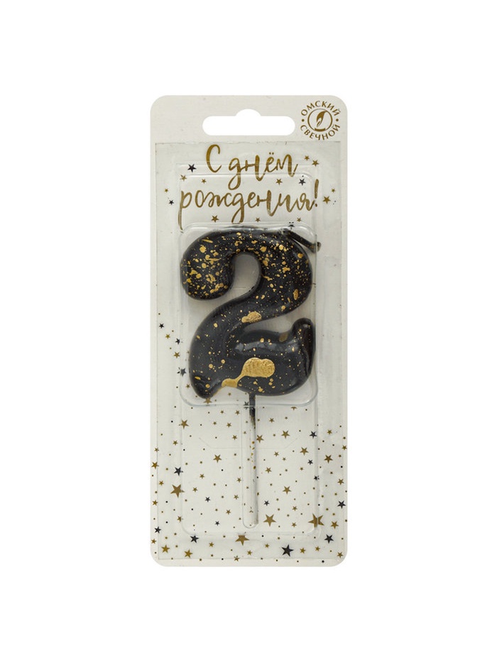 Свеча в торт «Черные брызги», цифра 2