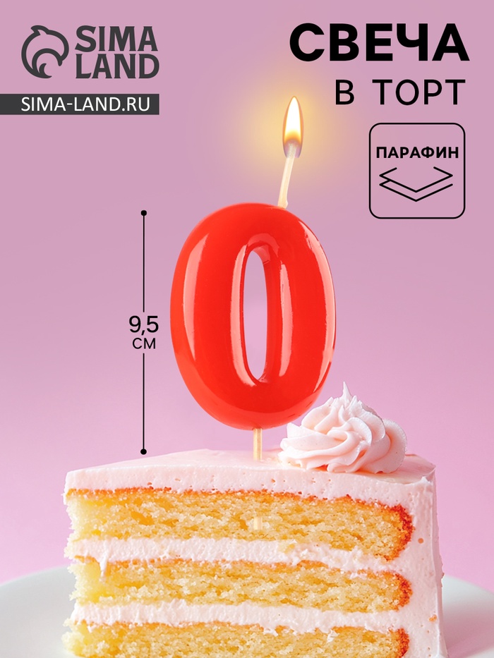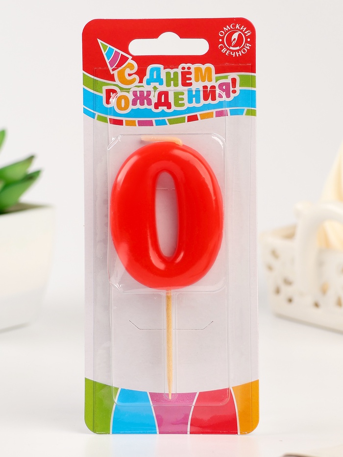 Свеча в торт «Красная», цифра 0