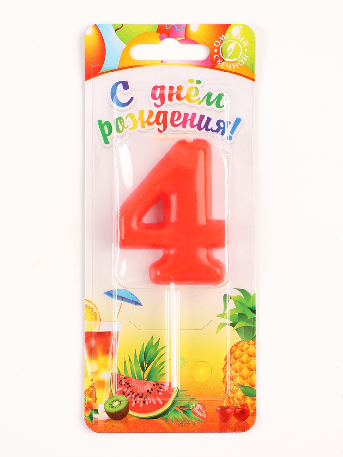 Свеча в торт «Красная», цифра 4