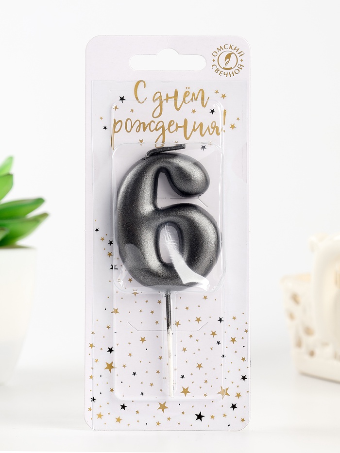 Свеча в торт «Мокрый асфальт», цифра 6