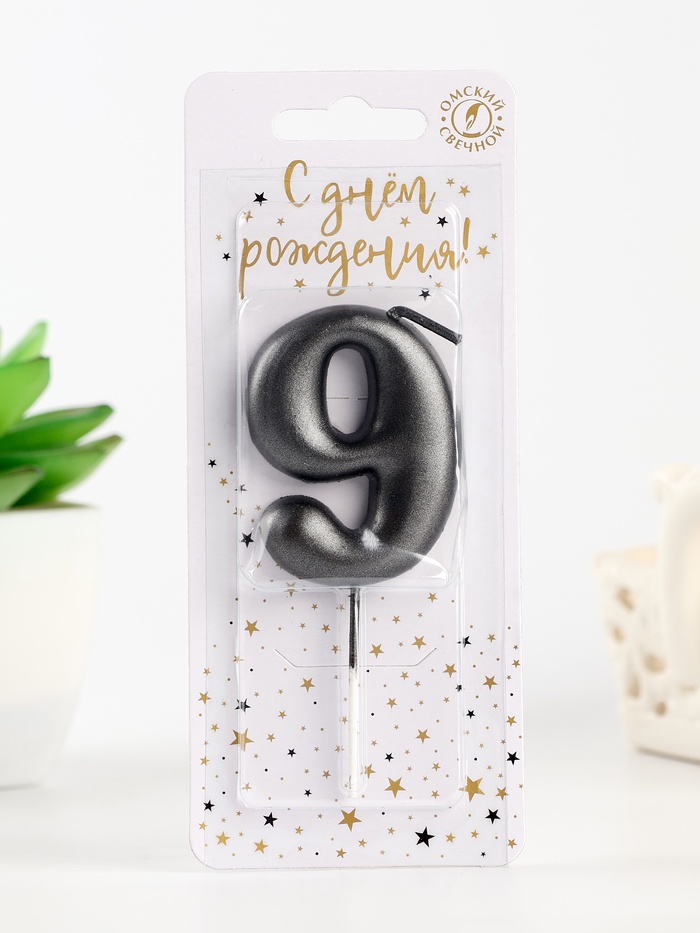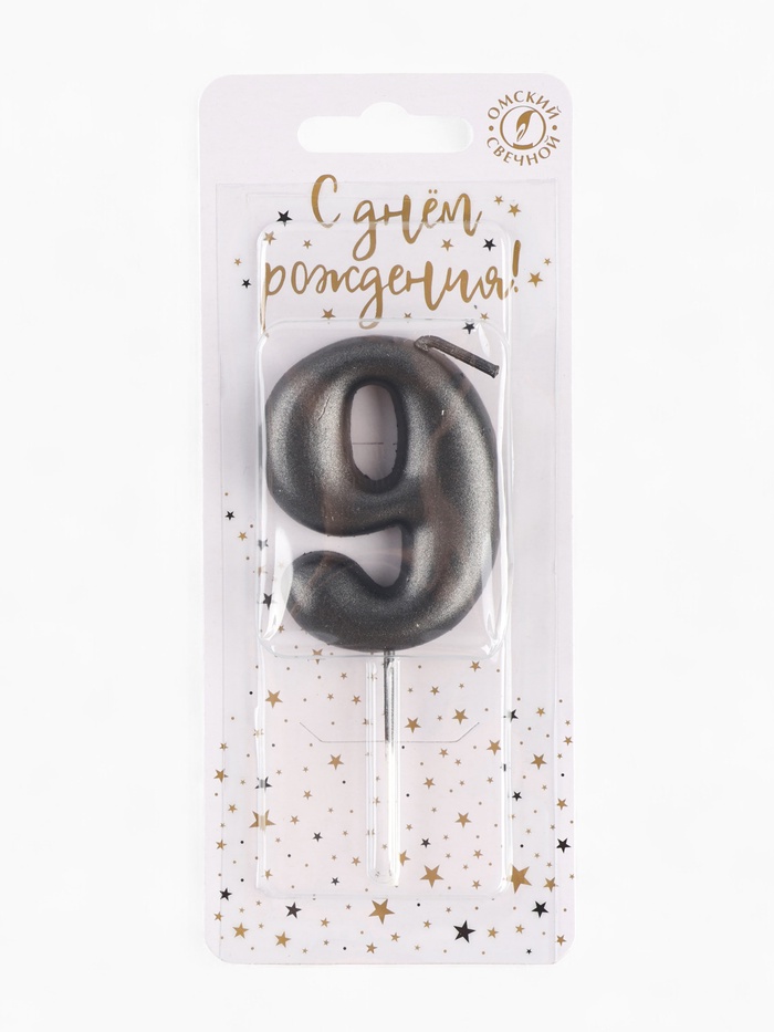 Свеча в торт «Мокрый асфальт», цифра 9