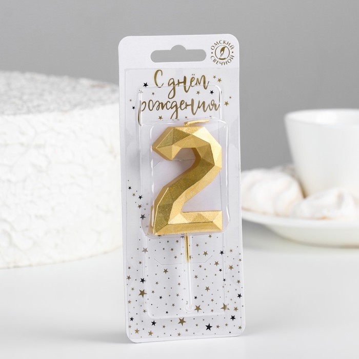 Свеча в торт на шпажке «Многогранник», цифра 2, 7 см, золото