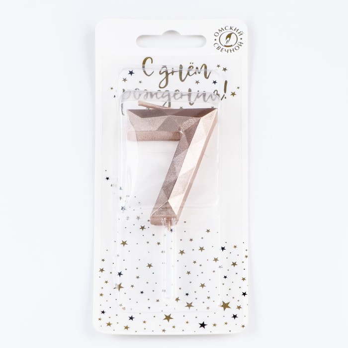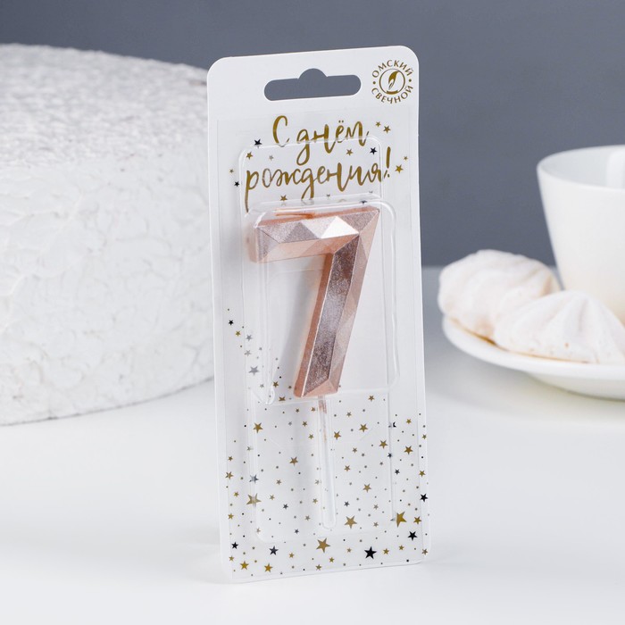Свеча в торт на шпажке «Многогранник», цифра 7, 7 см, шампань