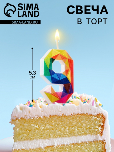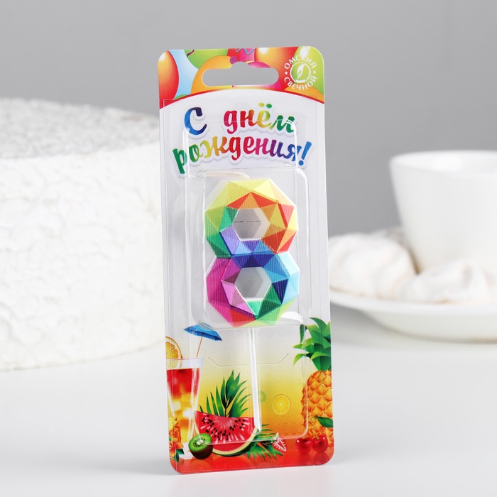Свеча в торт на шпажке «Разноцветные грани», цифра 8, 5.3 см