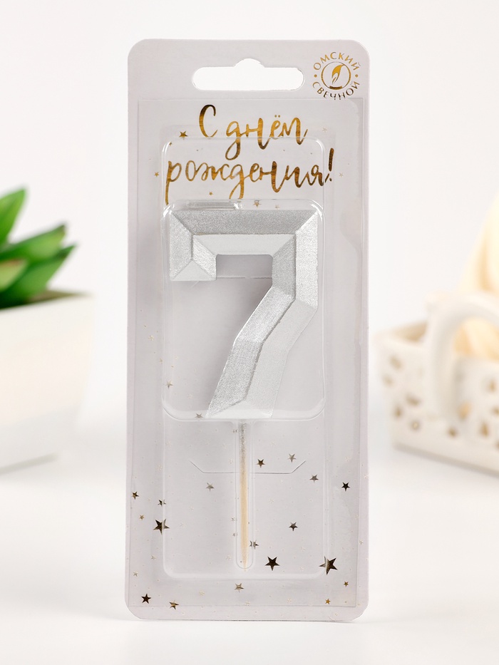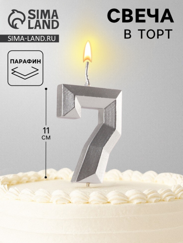 Свеча в торт на шпажке «Серебряные грани», цифра 7, серебряная