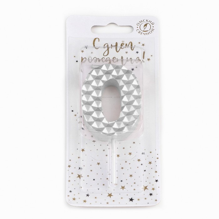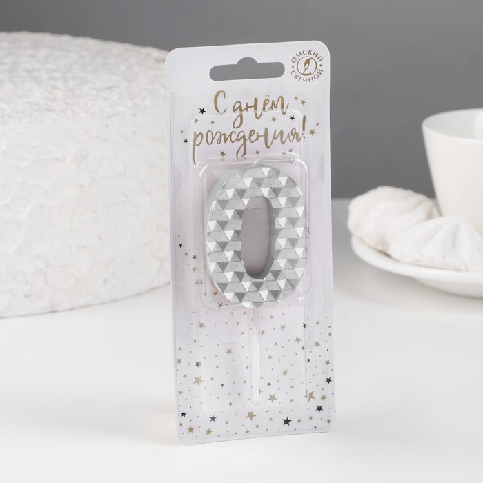 Свеча в торт на шпажке «Соты», цифра 0, 7 см, серебро