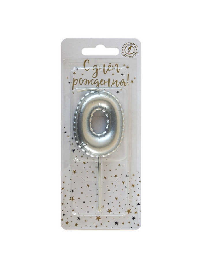 Свеча в торт на шпажке «Воздушная цифра 0», серебро