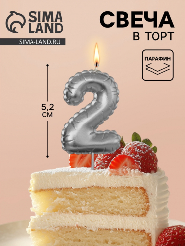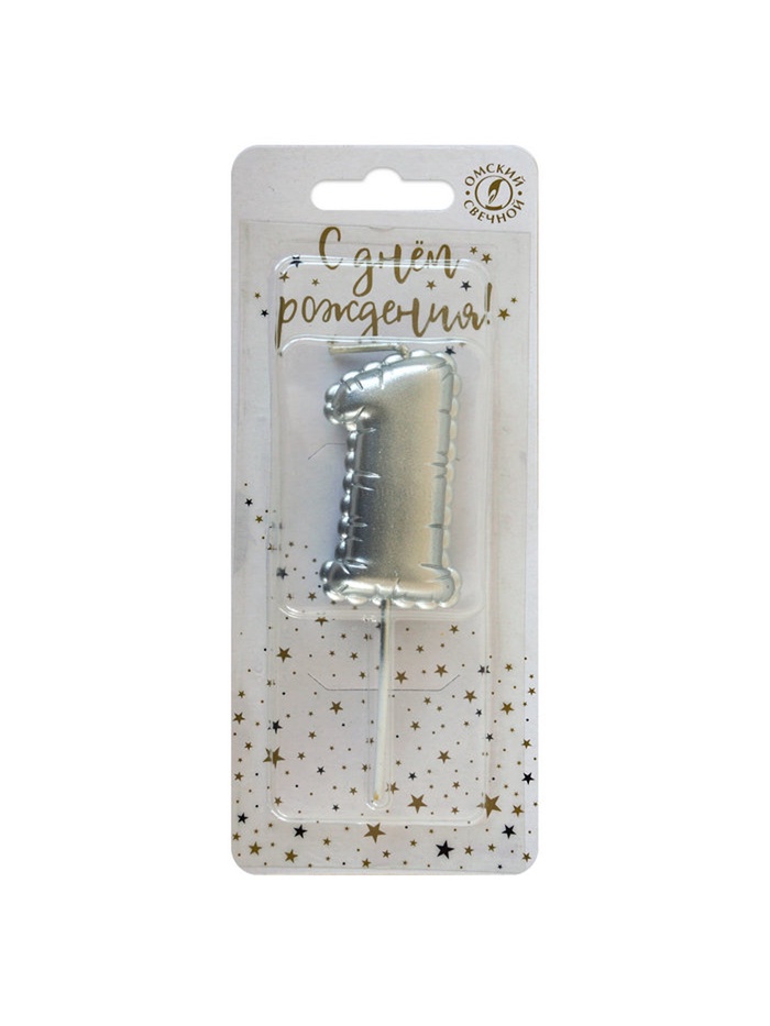 Свеча в торт на шпажке «Воздушная цифра 1», серебро