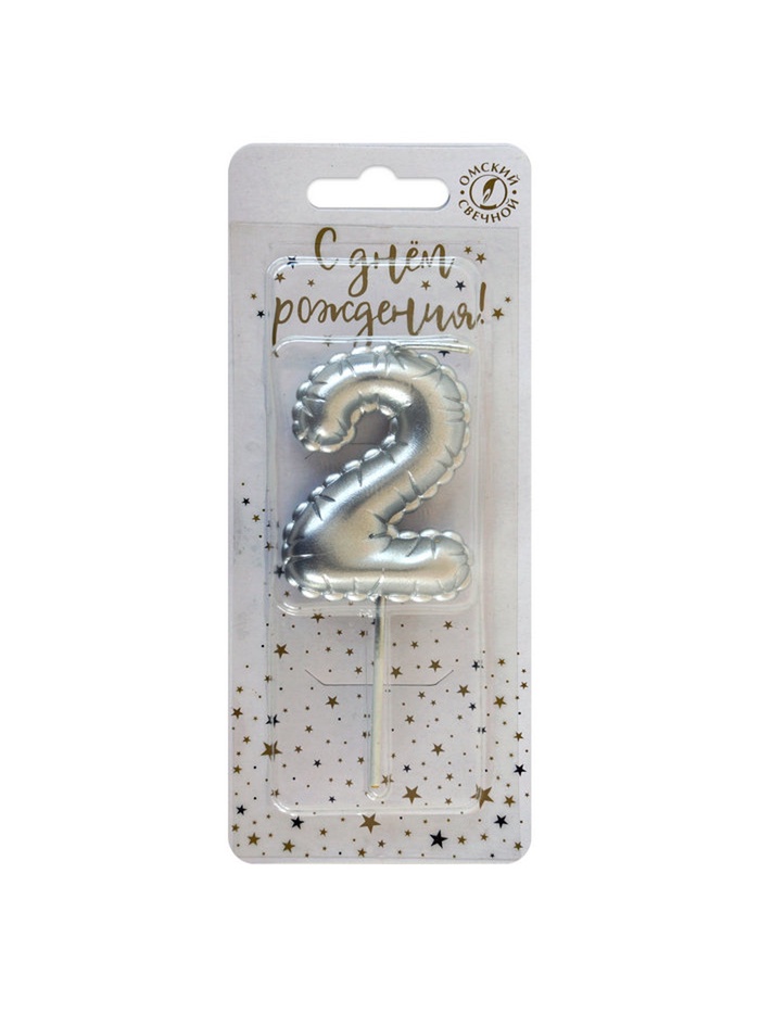 Свеча в торт на шпажке «Воздушная цифра 2», серебро