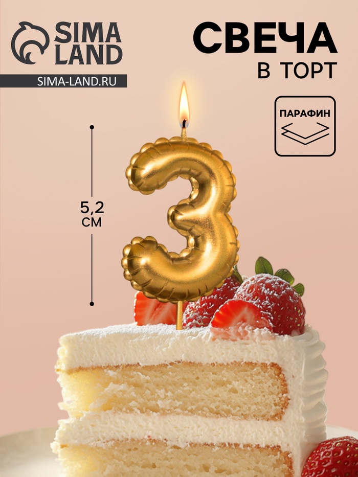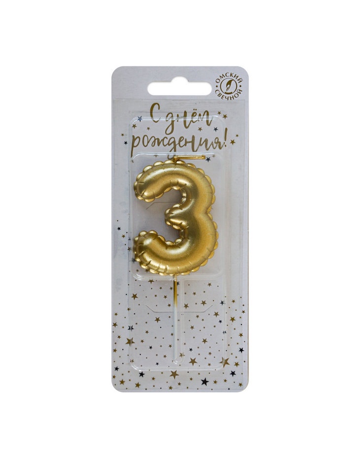 Свеча в торт на шпажке «Воздушная цифра 3», золото