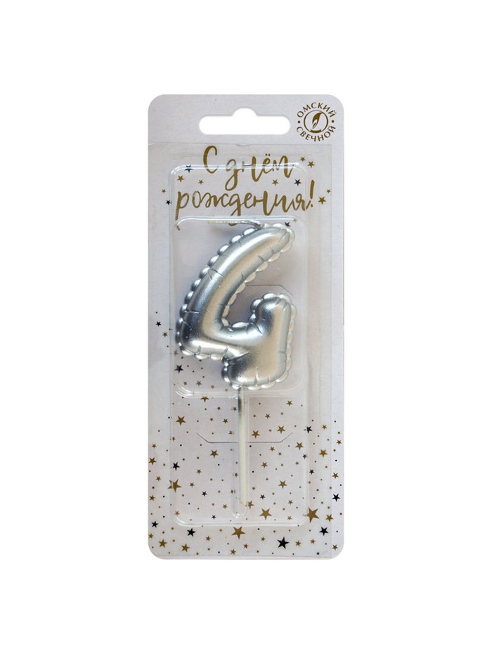 Свеча в торт на шпажке «Воздушная цифра 4», серебро