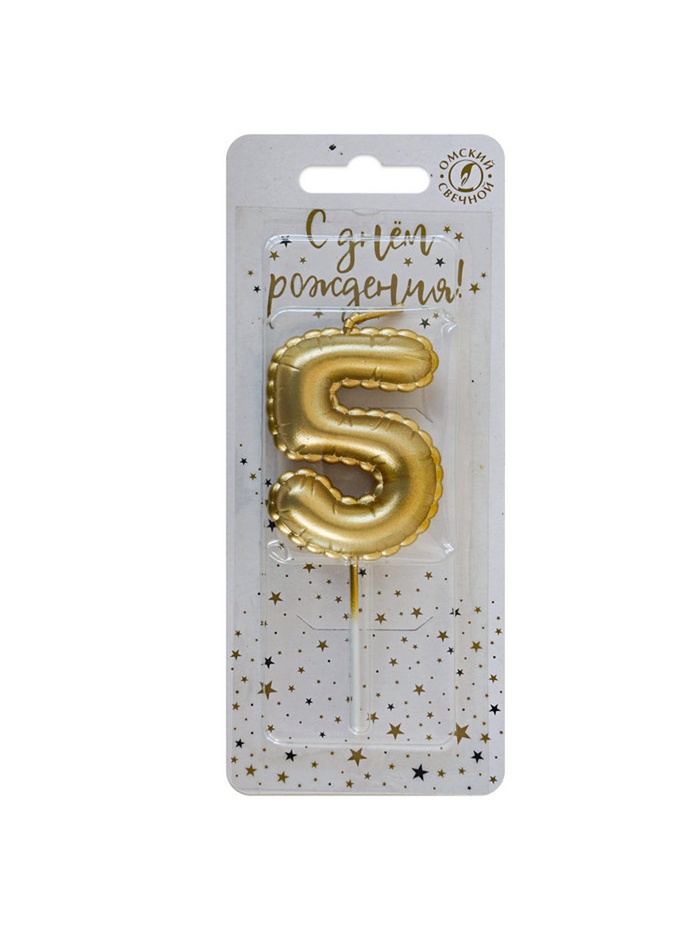 Свеча в торт на шпажке «Воздушная цифра 5», золото
