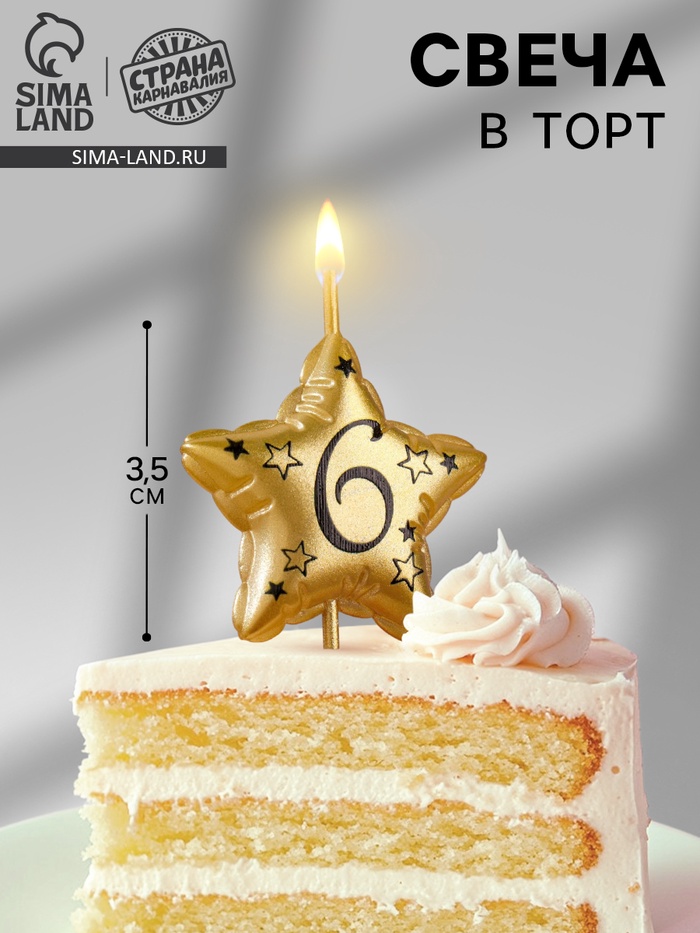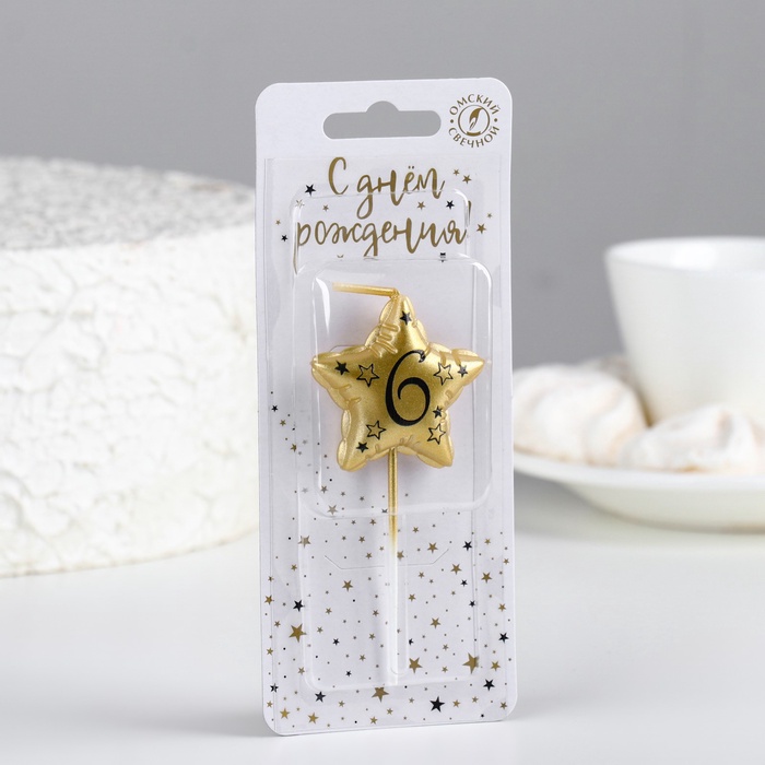 Свеча в торт на шпажке «Воздушная звездочка», цифра 6, 3.5 см, золото