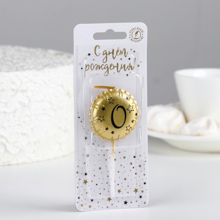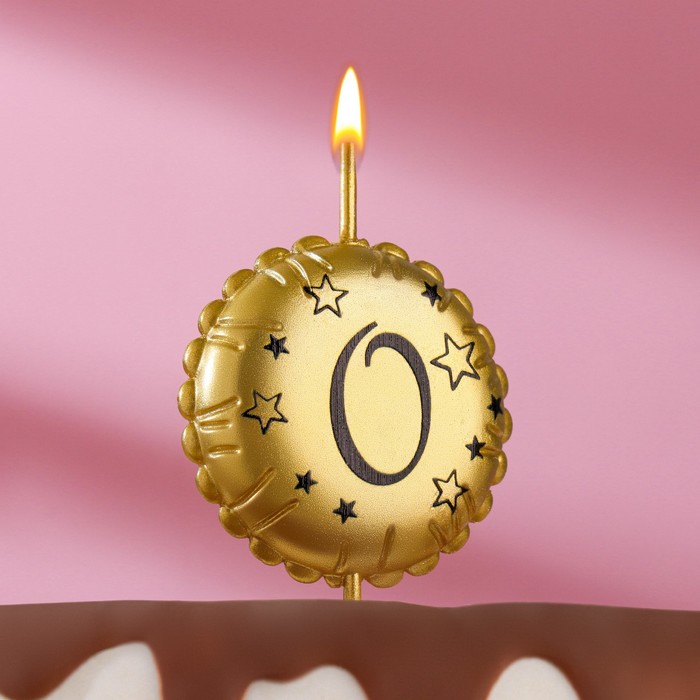 Свеча в торт на шпажке «Воздушный шарик», цифра 0, 3.5 см, золото
