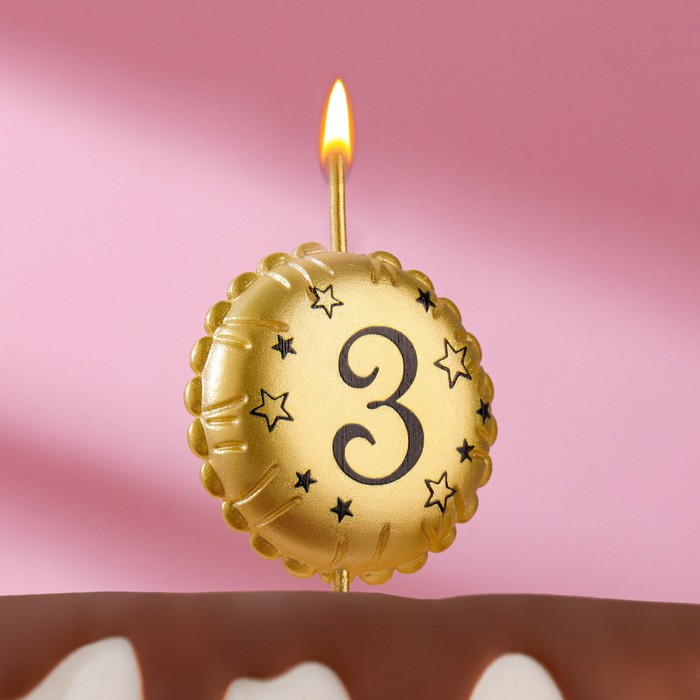 Свеча в торт на шпажке «Воздушный шарик», цифра 3, 3.5 см, золото