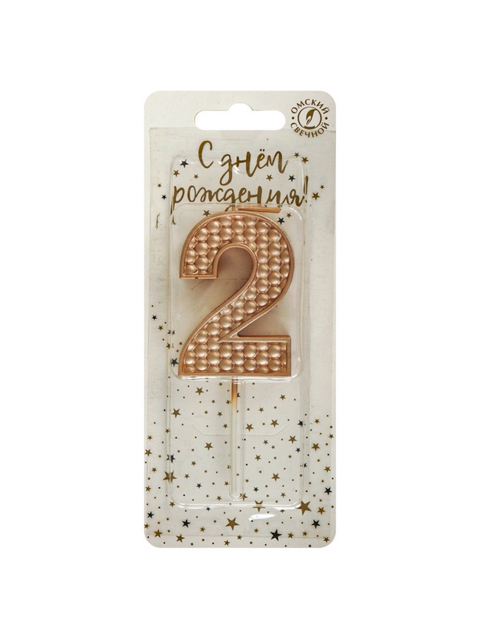 Свеча в торт на шпажке «Жемчужная», цифра 2, шампань
