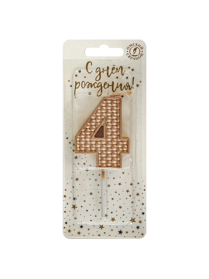 Свеча в торт на шпажке «Жемчужная», цифра 4, шампань